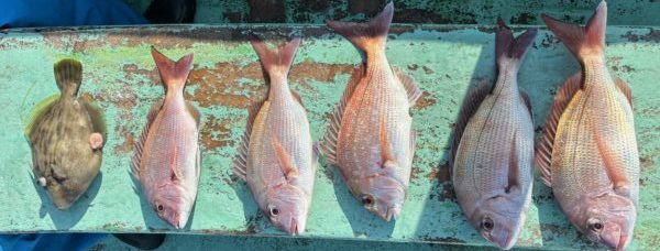 前半・後半ともに当たりはありましたが、バラシやホウボウの入れ食いも多く、真鯛は思うように数が伸びませんでした。