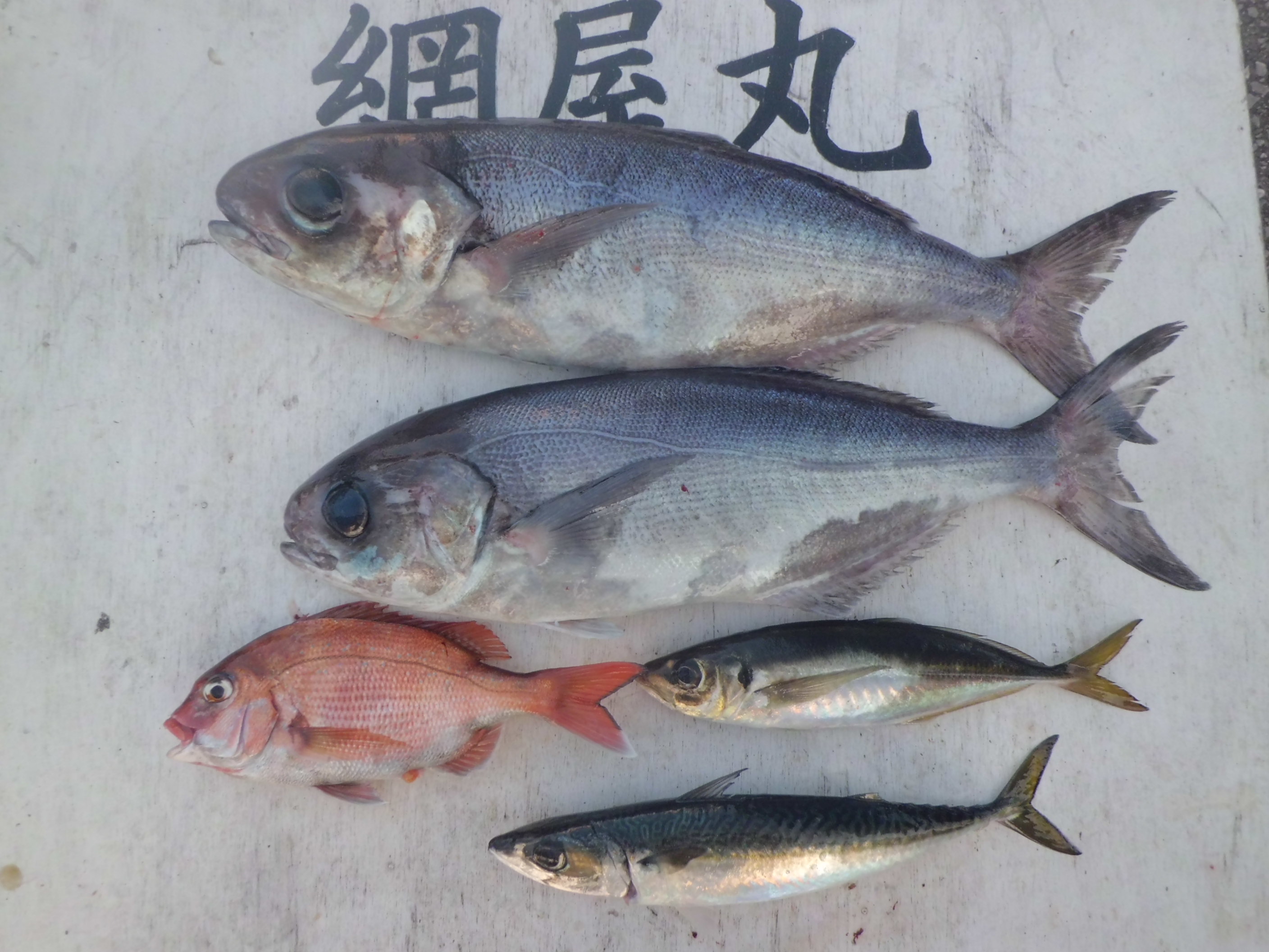 マダイ乗合船 真鯛 0.6k 0~1枚 メダイ 2.1~3.4k 2~5本 4本2名・3本2名 外道 アジ・サバ 今日も朝かア深場でアジ・サバ混じりでメダイが活発でした!バラシやハリス切れも多くありましたが、全員2本以上は釣れました! 真鯛は潮代わりに釣れたのみと、数が伸びませんでした。 投稿ナビゲーション 2月26日(木) 3月01日(日)