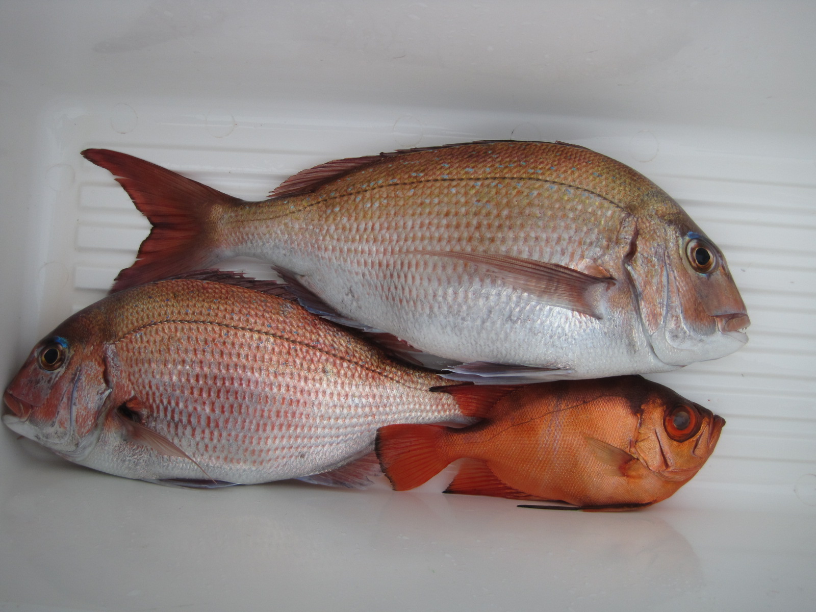マダイ乗合船 真鯛 0.5~1.8k 0~2枚 2枚2名 外道 メジナ・イナダ・アジ 久里浜~剣崎沖40m 本日も早い段階で型を見る事が出来ましたが、その後の食いが無く剣崎沖へ・・・ イナダやメジナ混じりで真鯛が釣れ、上記の様な釣果になりました! バラシやハリス切れも数回ありましたので、明日も期待して頑張ります! 投稿ナビゲーション 5月23日 5月25日(月)