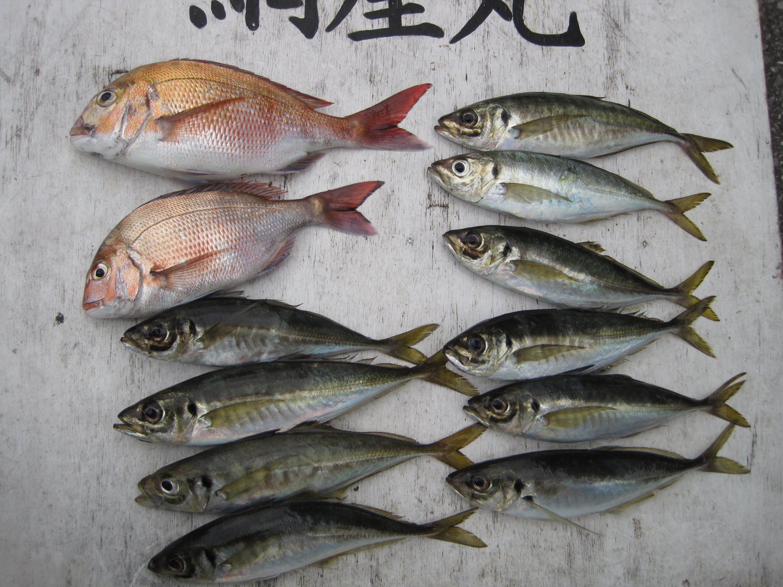 マダイ乗合船 真鯛 0.6~1.8k 1~2枚 外道 アジ・マトウダイ 久里浜沖40m 本日も朝と潮代わりに当たりが有り、上記の様の釣果になりました! 外道のアジは32cm前後の良型がコンスタントに当たり、下記のように数が釣れました! 投稿ナビゲーション 6月04日(木) 6月06日(土)