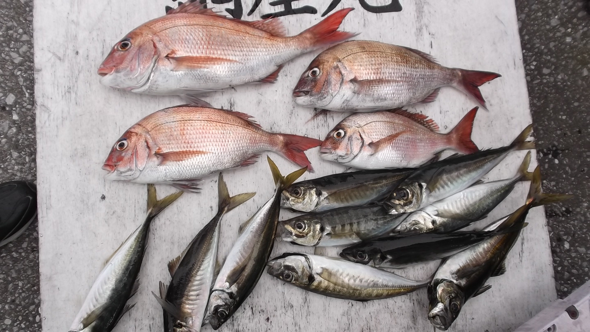 朝はアジ狙いで真鯛やメジナが釣れ、後半は深場でメダイを狙いました!