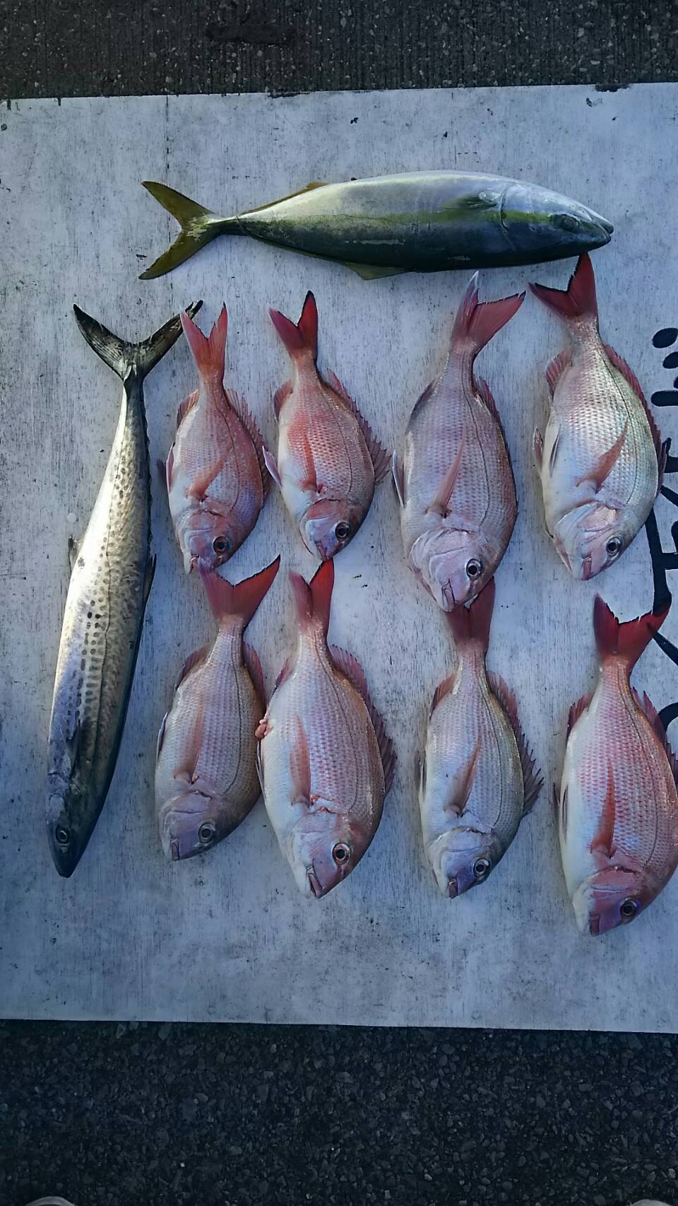 マダイ乗合船 真鯛 0.4~1.0k、0~8枚 外道 イナダ・イシダイ・ウマズラ・イトヨリ・サワラ 久里浜沖40m 本日は軽く分けて2船での出船。TOP8枚・7枚2名と平均的に釣れ好調継続中です。 イナダが主体で釣れた別船は0~1枚と真鯛の数が伸びませんでしたが、イナダは1~10本と全員GETする事が出来ました。 イナダは1.2k~1.8kの良型が0~10本。 12月29日~1月4日までは乗合船2船で出船となります。(人数次第) *必ず釣行予定日の前日に、電話にて出船確認する様にお願いします。 投稿ナビゲーション 01月02日(火) 01月04日(木)