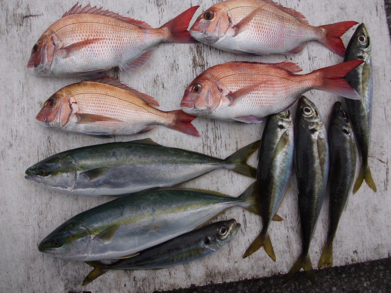 マダイ乗合船 真鯛 0.7~1.5k 1~4枚 2番手3枚 外道 アジ・サバ・イナダ 久里浜沖70~90m 本日朝はイナダ混じりで、後半はアジ混じりで真鯛の当たりがあり、上記のような釣果に恵まれました。1k前後が平均と型がそろっていました。真鯛は次点が2枚。イナダは1.0~1.6k、2~5枚 投稿ナビゲーション 01月16日(土) 01月18日(月)