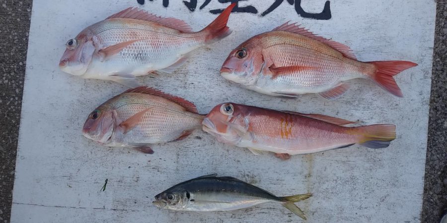 本日は前半は連続HITも有りましたが、後半はアジなどの外道は釣れましたが、真鯛は型が出た程度でした。