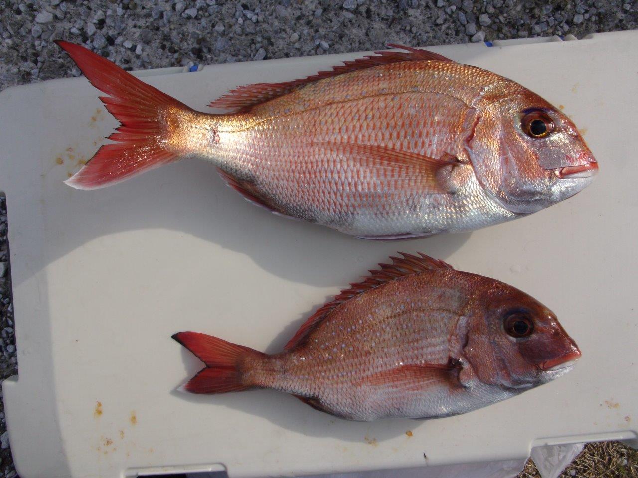マダイ乗合船 真鯛 0.4~2.1k、0~2枚 2枚2名 外道 アジ・サバ・メダイ 久里浜沖90m 本日は朝のうちは当たりが少なく苦戦しましたが、潮が流れ始めるとアジやメダイに混じって真鯛が釣れ、0は1名と平均的に当たりがありました。外道のメダイは3.8~7.8k・0~1本と良型でした! 投稿ナビゲーション 03月10日(木) 03月13日(日)