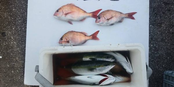 本日もイナダは多く食いクーラーは賑やかになりました!真鯛は潮の代わりにぽつぽつ当たり、上記の様な釣果でした!