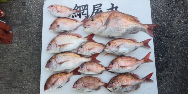 本日も朝から剣崎沖のノッコミ真鯛釣り!朝からコンスタントに当たり、TOPは断トツの12枚GETでした!大型も釣れ、ハリス切れも多く有りましたので、明日も期待できそうです!