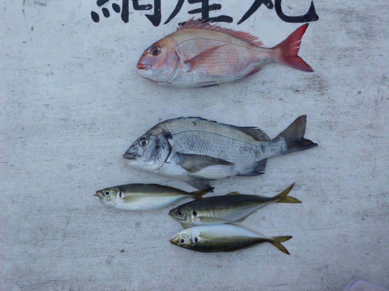 マダイ乗合船 真鯛 1.2k、0~1枚 外道 クロダイ・メジナ・アジ 久里浜沖40m 本日は朝の早段階で型が出ましたが、追加がなく上記の様に型が出たのみでした。 外道のクロダイは0~1尾、メジナは0~2尾 一つテンヤ&タイラバ乗合船 次回は21日(土)、22日(日)に出船を予定しております。ご興味ある方はご連絡お待ちしています。 投稿ナビゲーション 05月14日(土) 05月16日(月)
