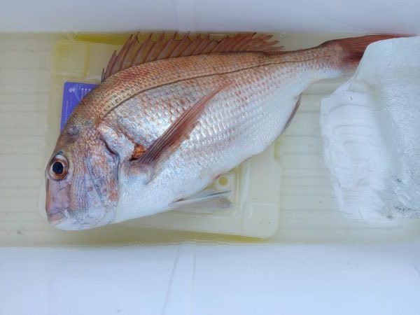 本日より再開。前半は浅場メインで探し、後半は深場浅場と広範囲で探しました。前半は外道などの当たりも多くありましたが、後半は当たり少なく苦戦しました。真鯛は大型のみでしたが、船中2枚と数が釣れませんでした!外道のスズキは3.9kと大型でした。