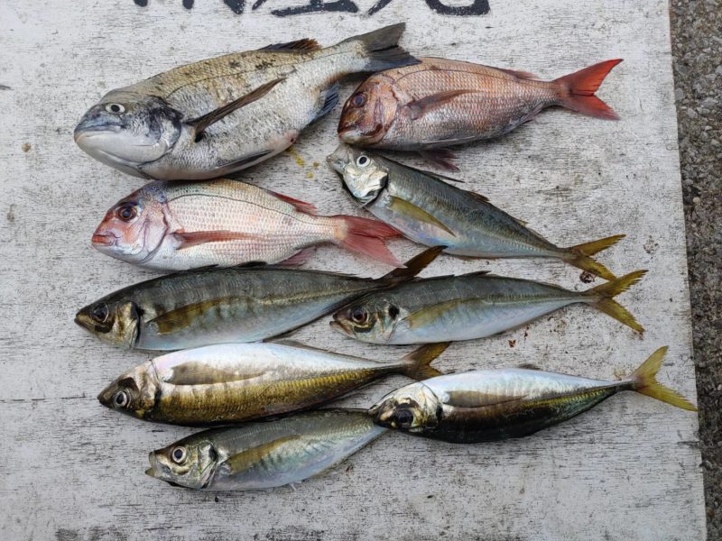 前半にアジ混じりで真鯛が釣れましたが、その後は外道を追加したのみでした。