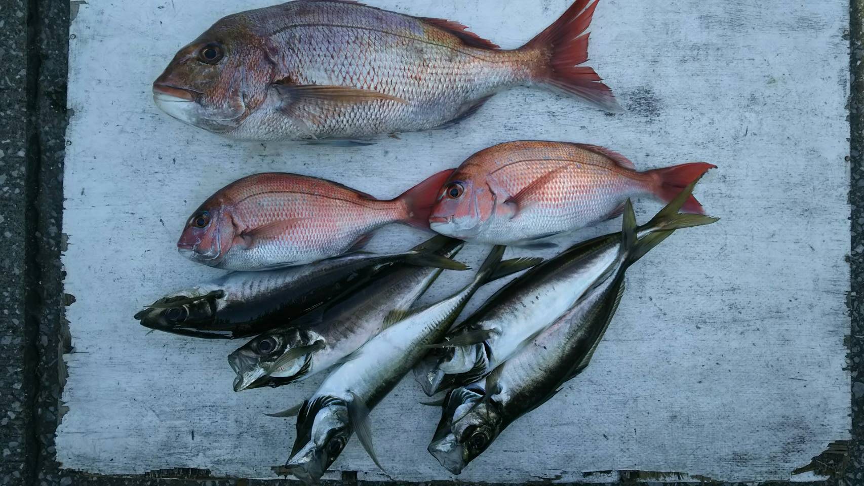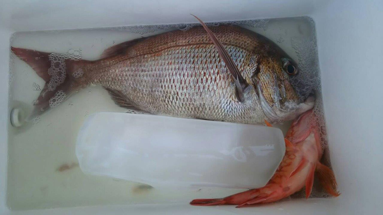 昨日は潮が流れず苦戦しましたが、本日は朝の早い潮の時に真鯛の当たりが3回あり、1匹目はGET!2匹目・3匹目はバラシてしまい船中1枚ともったいない一日でした。その後は数か所移動しましたが、外道のみで真鯛の追加は有りませんでした。明日は人数揃わず出船中止。次回は8月中旬予定