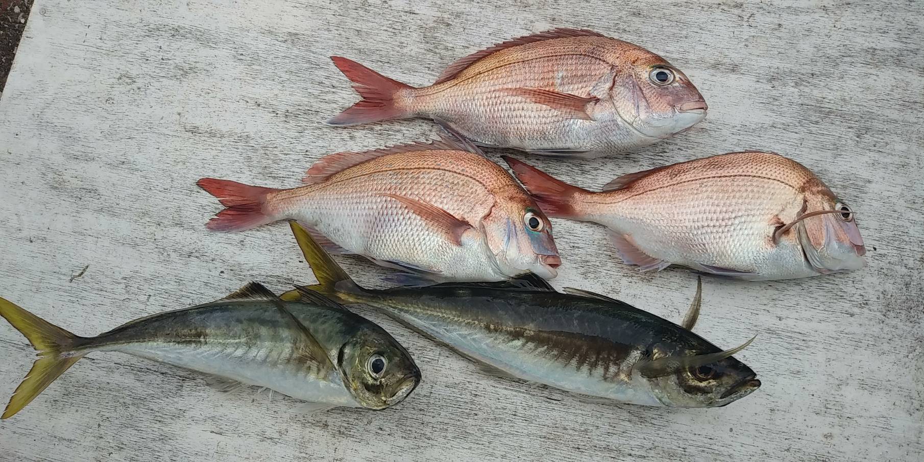 本日もお客様1名様と見習いの2名で出船。真鯛は潮の代わりに当たりが有り、2人で2枚・3枚と釣る事が出来ました!