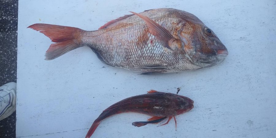 本日も水色が良く朝は厳しい状況でしたが、途中のポイントで大型が連続HITし、5.2kは釣り上げましたが、もう片方は30m以上ドラグが出てバレてしまいました。残念ですが、次回に期待です!その後は小振りな真鯛を追加し終了でした。