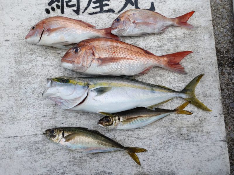 朝の早い段階で型が出ました!ワラサやアジ混じりでマダイを追加し、TOP3枚で終了でした。