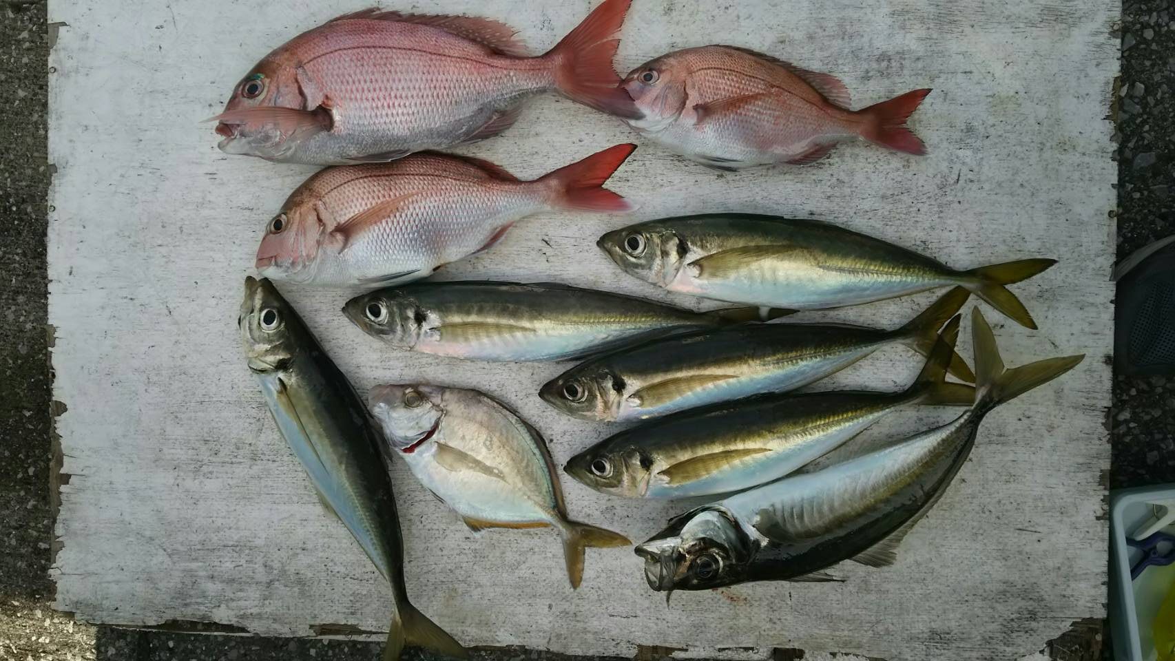 本日は朝と潮代わりに型が出ました!2番手2枚で型は1k前後と食べごろサイズが釣れました!後半は当たりが遠くなってしまったので、本日も深場を挑戦し、大アジがポツポツ釣れました。