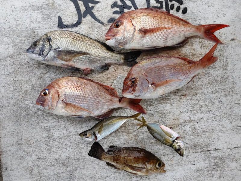 真鯛 0.4〜5.0k(3.4kも)、1〜3枚 2枚6名