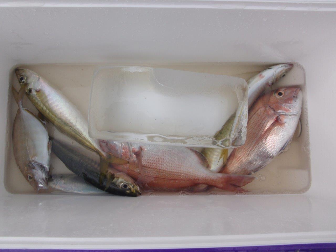 本日は早い段階で型は見れましたが、その後の食いが渋く、数が伸びませんでした。上記の釣果は2隻の高低