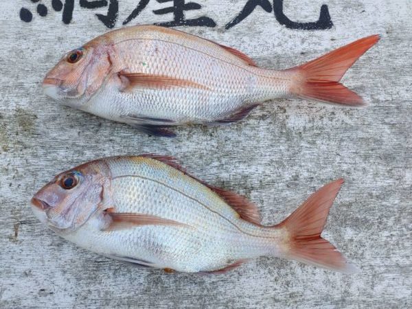 本日は最近釣れているマゴチやキビレなどの良い外道が釣れず、真鯛も小振のみと食いが渋りました。