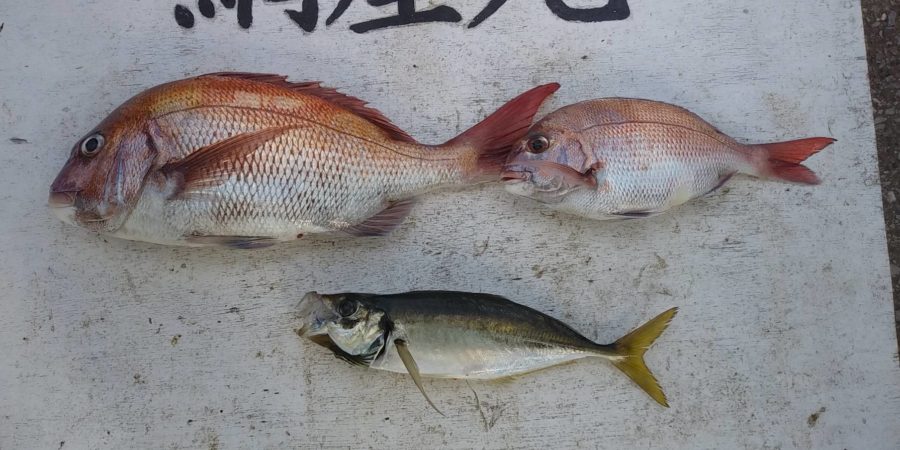 真鯛 0.4~3.1k、0~2枚 2枚2名