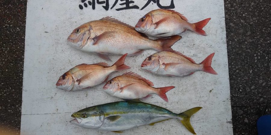 本日も前半はイナダやワラサが釣れました。潮が流れ真鯛を釣り上げる事が出来ました。