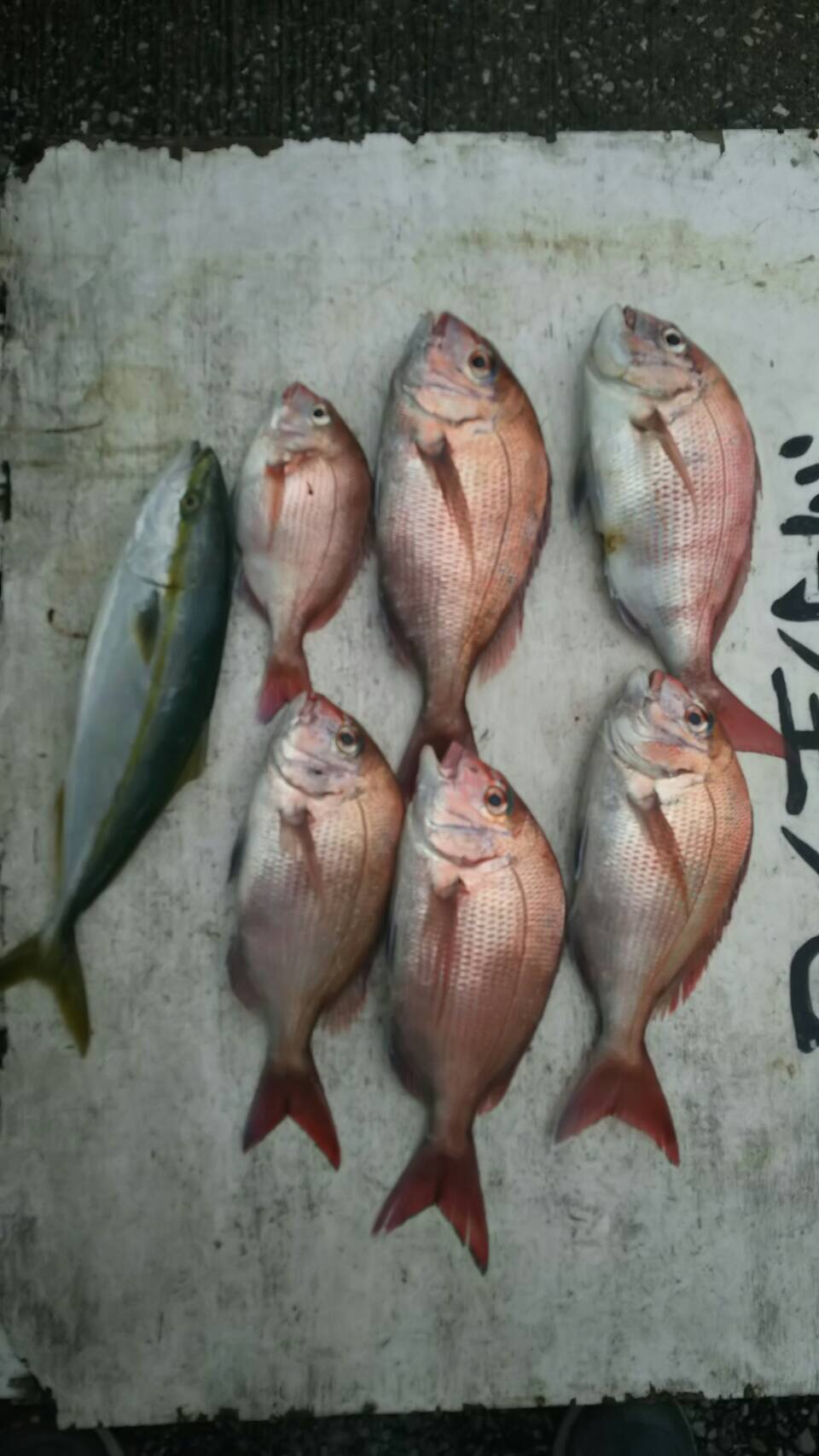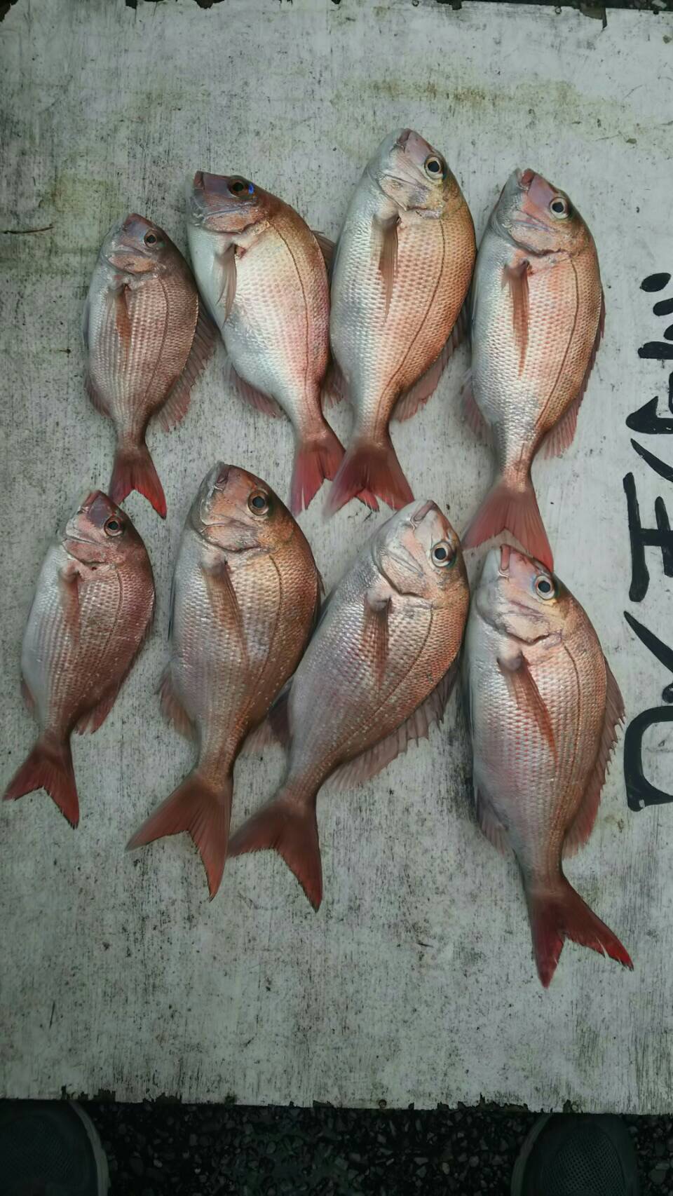 マダイ乗合船 真鯛 0.4~1.8k、6~8枚 外道 イナダ 久里浜30m 本日は朝から好調に当たりが有り、上記の様な好釣果に恵まれました!!バラシも多く当たりの多い一日でした。 投稿ナビゲーション 10月16日(日) 10月18日(火)