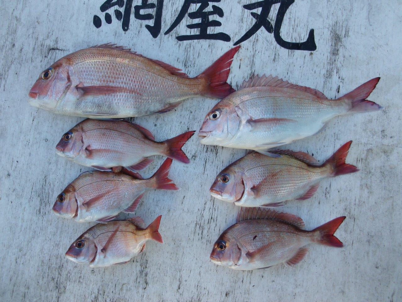 本日は小振り中心でしたが、食いが立つ時間帯が有り!上記の様な釣果になりました!昨日良脳に大きめの真鯛は釣れませんでしたが、ハリス切れが数回ありましたので、明日も期待して出船します!