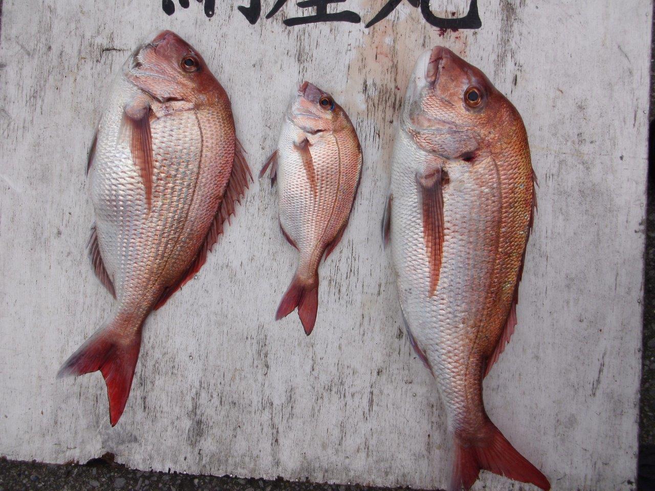 マダイ乗合船 真鯛 0.4~3.8k 0~3枚 3枚2名 3.0k・2.8kも!! 外道 アジ・イシダイ・ワラサ3.1~4k、0~1本・イナダ 久里浜沖30~40m 本日も3k台が2枚に2.8kも釣れ、型が良い魚が多く釣れました!外道も上記の様に多彩でした!反応は高いので、明日も北して出船します! 一つテンヤ五目船 0.4k~0.5k 0~1枚 外道 ホウボウ・カワハギ 久里浜沖30~50m スポットで出船しましたが、当たり悪く苦戦しました!バラシも有りましたので、今後に期待できる一日でした。 投稿ナビゲーション 11月10日(火) 11月12日(木)