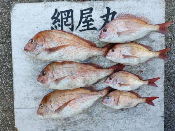 本日は真鯛の活性が高く食いが立ちました!TOP7枚・時点4枚と朝から好調に当たり!サイズも4.2k・3.7k・3.4kと大鯛が当たりました!