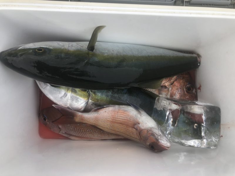 朝はイナダが混じり3~8本。タイは大型でしたが、数は伸びませでした。