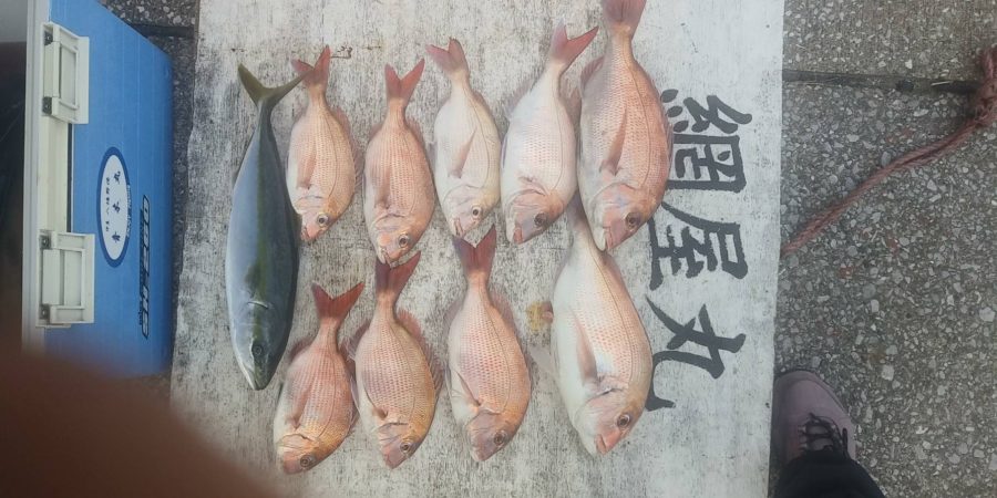 本日は朝から好調に当たり上記の様な釣果に恵まれました!場所を数か所試しましたが、すべのポイントで真鯛が釣れましたので、今後も期待できそうです!!