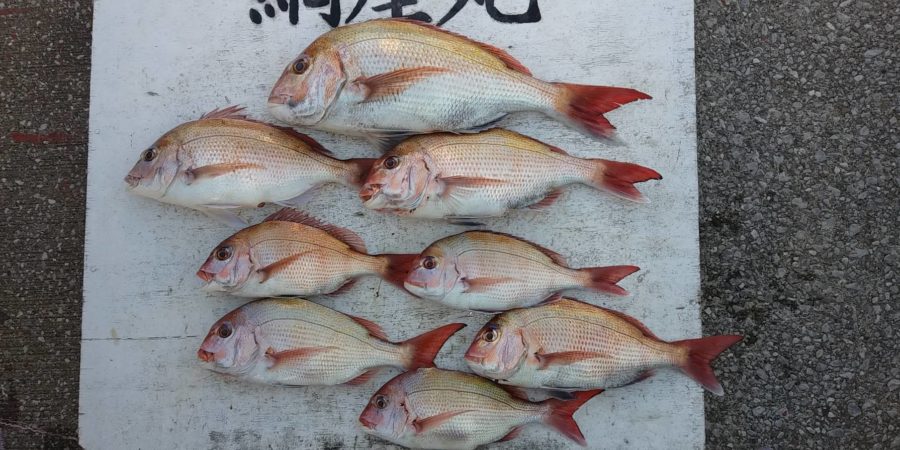 本日も真鯛の活性が高く、皆様数回当たりが有りましたが、残念ながら1名のみ型を見る事が出来ませんでした!平均的に釣れ絶好調でした!0は1名のみ