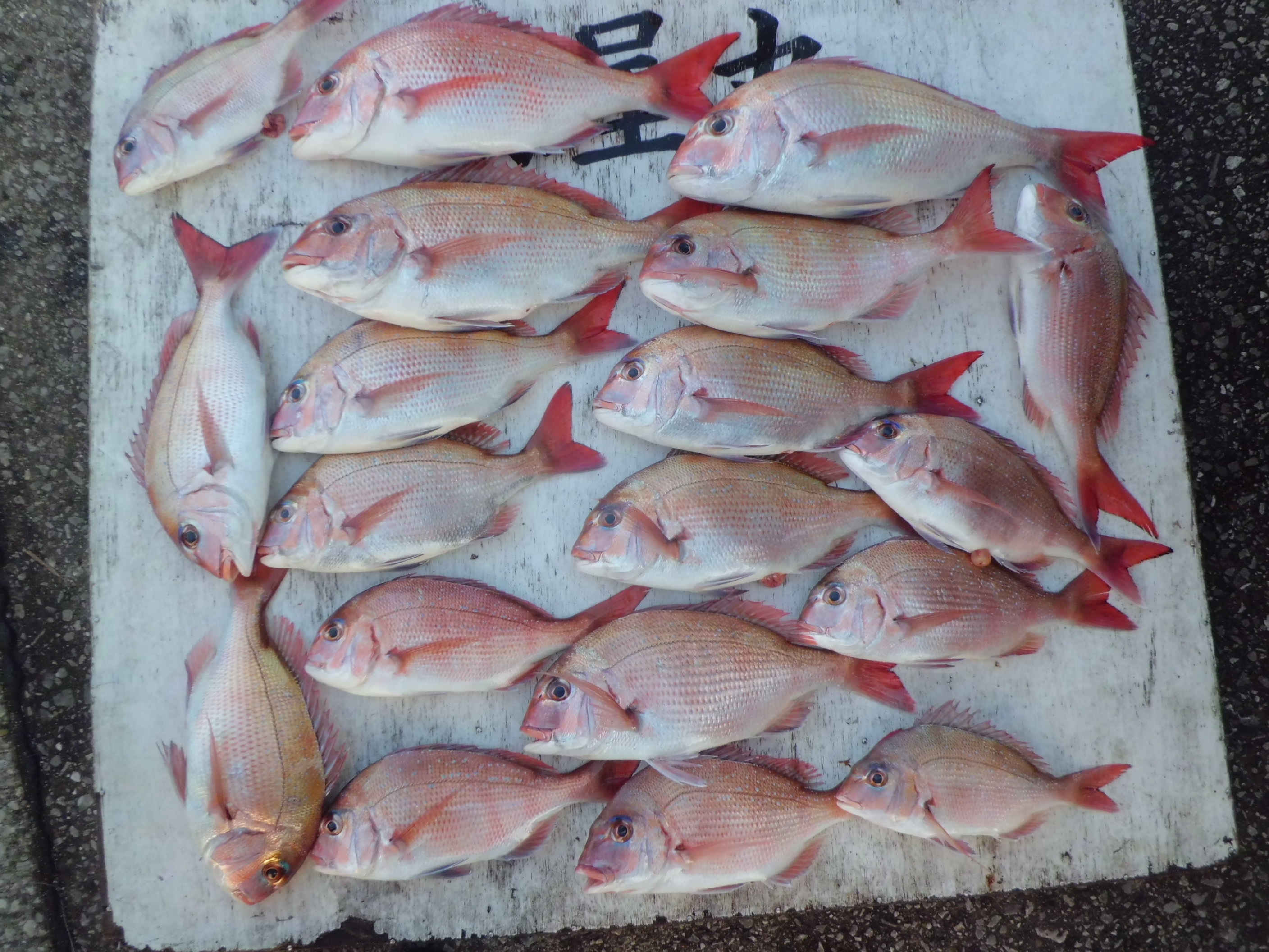 マダイ乗合船 真鯛 0.4~1.8k 4~19枚 2番手10枚 ワラサ 3.5~4.6k 0~2本 外道 サバ・イシダイ・イナダ 久里浜沖60m 次点9枚・8枚・5枚と続き、本日も朝から好調に当たりが有りました!バラシやハリス切れも多くありますので、ハリスは多めにご持参下さい! 投稿ナビゲーション 12月23日(水) 12月26日(土)