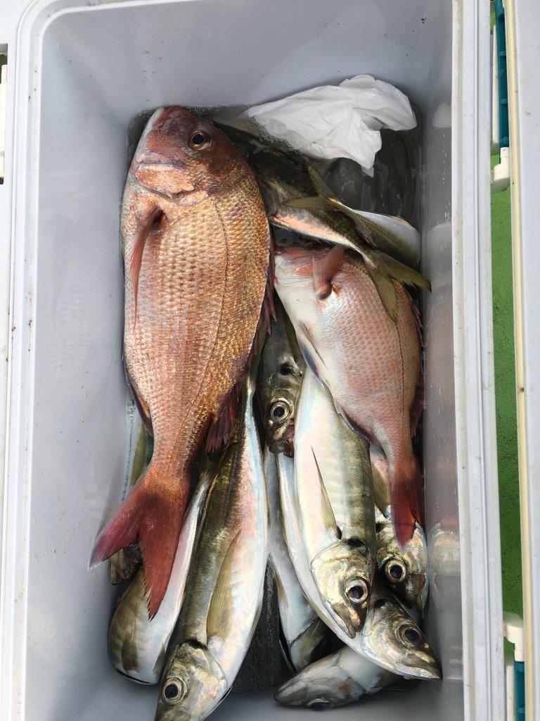 年内は休まず営業!新年は2日より営業いたします。 マダイ乗合船 真鯛 0.6~1.8k、0~2枚 外道 アジ・サバ 久里浜~下浦沖50m 本日もアジは28~40cm・5~20尾良く釣れましたが、本命の食いが渋く、TOP2枚と数が伸びませんでした。 投稿ナビゲーション 12月25日(日) 12月27日(火)