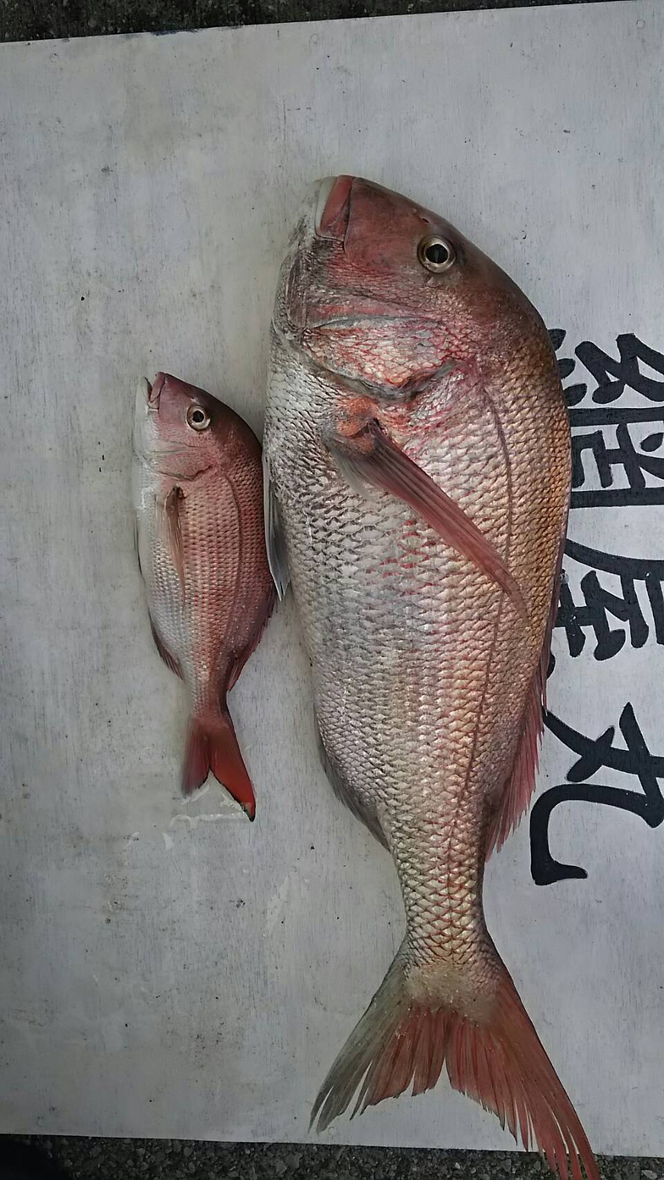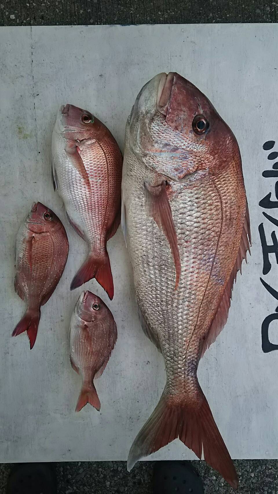 マダイ乗合船 真鯛 0.4~6.3K、5.2kも! 0~5枚 2番手4枚 外道 アジ・ウマズラ・ワカシ・オキメバル 久里浜沖40m 本日は軽く2隻に分けて出船!上記の釣果は2隻の高低。 朝の1投目から6.3kの大型が釣れ、その後も5.2k・2.4kと良型が釣れ、上記の様な好釣果に恵まれました!平均サイズは1k超えと一番喜ばれるサイズでした! 投稿ナビゲーション 8月11日(金) 8月13日(日)