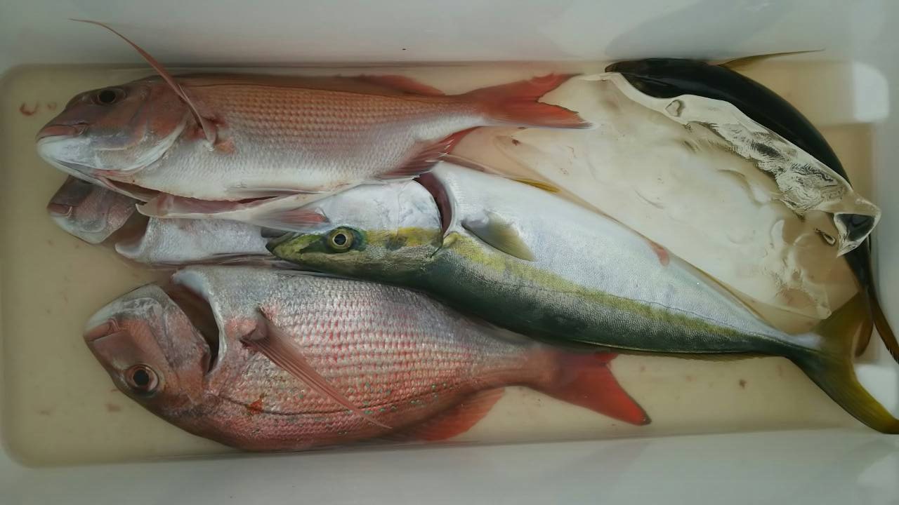 マダイ乗合船 真鯛 0.4~1.8k 0~3枚 2枚3名 外道 イナダ・サバ・アジ 久里浜沖30m 本日は朝から雷雨の為、30分ほど遅らせての出船になりました! 朝の早い段階で真鯛が釣れましたが、今日はいつもの様に当たりが良い時間帯が無く、サバの合間に釣れた単発の当たりだけでした。イナダは0~2本 投稿ナビゲーション 9月17日(木) 9月19日(土)