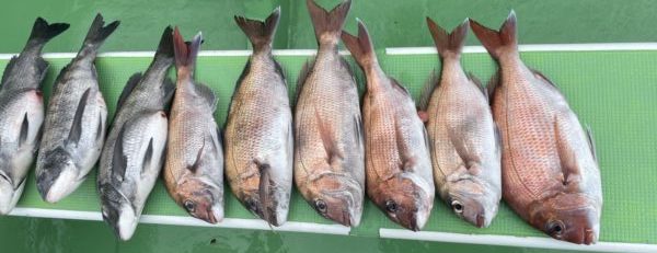 朝から真鯛の活性は良く、クロダイ混じりで一日を通してポツポツと当たりがありました。