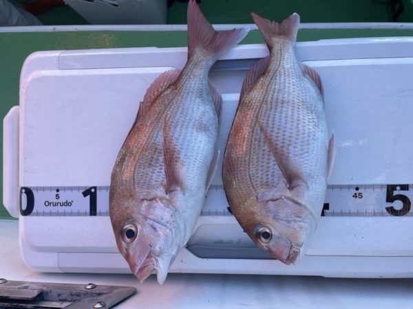 なんとか真鯛の顔は見られましたが数が伸びず、途中でポイント変更へ——。