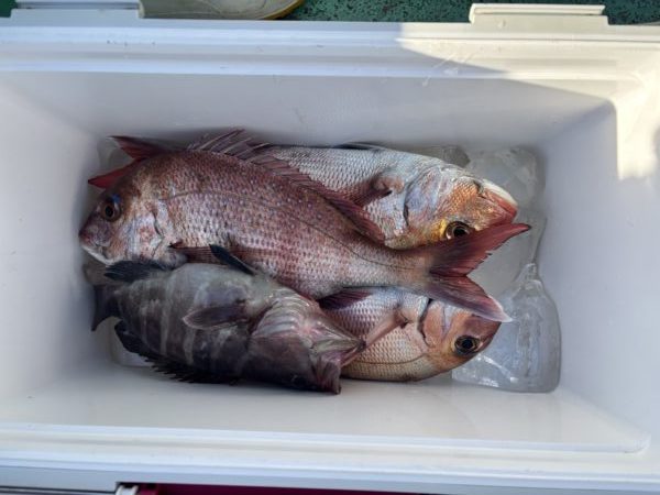 真鯛は潮が動く時間帯に活性が見られ、3枚キャッチされたお客様も。